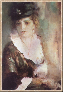 Портрет Д. В. Зеркаловой в роли Юлии Тугиной из пьесы А. Н. Островского "Последняя жертва". 1940. Акварель